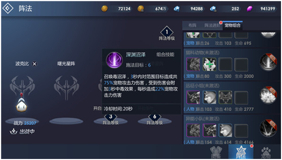 宠物组合是游戏里一个特色的玩法。当玩家聚齐对应组合的全部宠物时,可以激活宠物组合属性,同时获得更强力的宠物技能。