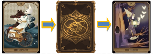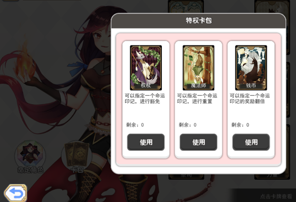 每日的塔罗牌组都是随机的,牌组中包含任务牌、剧情牌、特权牌。