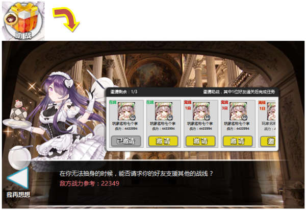 2.点击【邀请】发送助战邀请给好友,每个卡牌任务限定发送最多3个邀请,单个任务不能重复邀请同一个好友