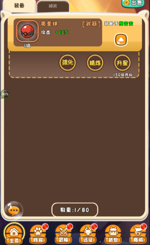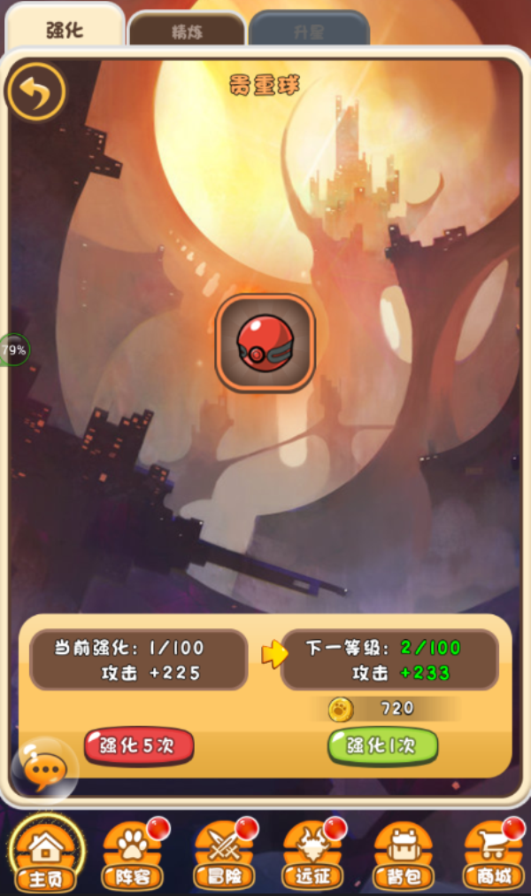 游戏主界面-养成-道具,选择相应的装备!选择精炼