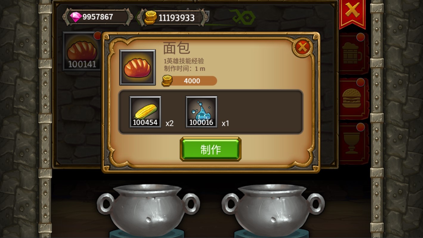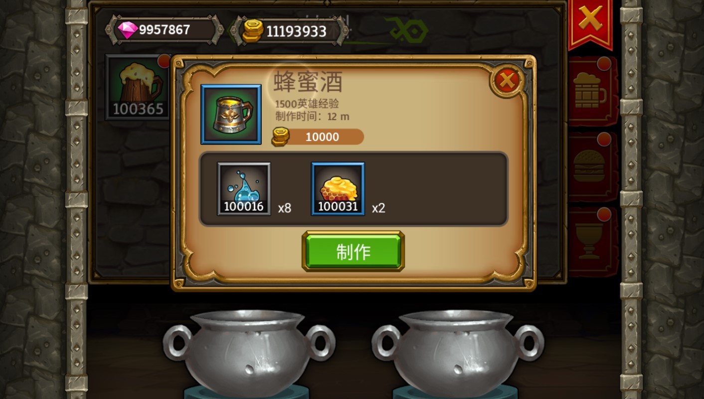 第一种是酒类,各种食材酿制出美味的啤酒。可以帮助英雄们快速升级,穿戴更高级的装备。