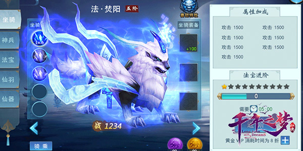 在国民级仙侠游戏《千年之梦》里,战骑系统是游戏的核心养成玩法之一,内容丰富,功能强大,霸气十足的飞龙,流光溢彩的神翼,华丽炫酷的神兵,灵力无比的圣器,神秘莫测的秘宝都是战骑系统的组成部分。可以说,掌握了战骑系统就是掌握了变强的秘诀,一起来了解一下吧!