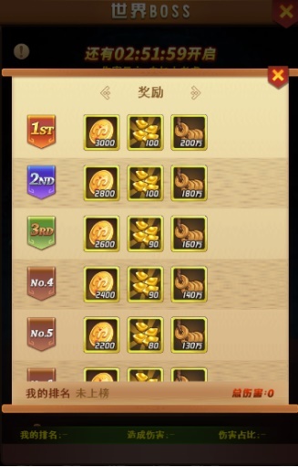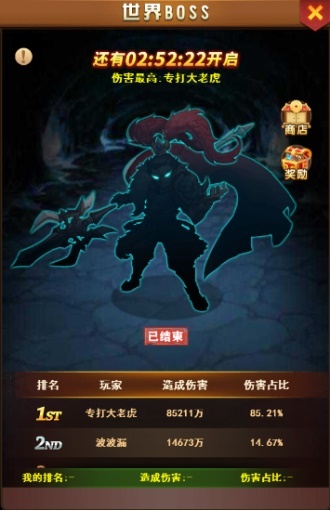 不少的玩世界boss需要玩家达到55级才能开启,每天12:30、20:00开启,挑战持续15分钟。活动时间内,玩家都可以进行挑战,每次挑战都可以获得魔魂奖励,对boss造成伤害的前10名玩家,还可以额外获得排行奖励,该奖励会在活动结束后通过邮件发放。世界boss被击杀后,全部的玩家还可以领取boss奖励宝箱,该宝箱持续2小时,超时则无法再领取,请记得领取哟!