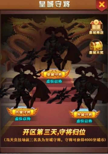 2、皇城活动时间为期2天,第一天选出皇城守将,第二天进行皇城攻伐战。