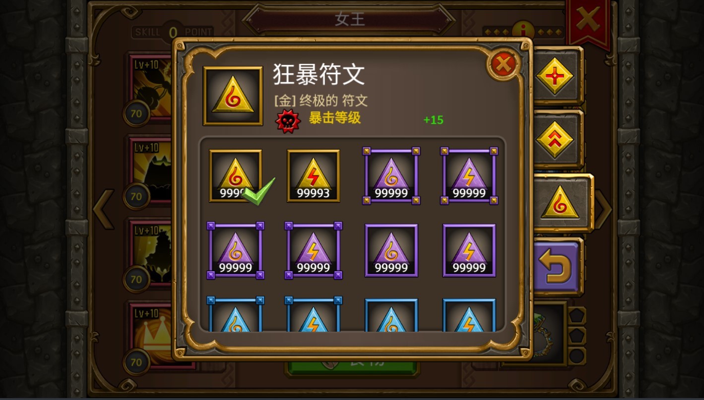 符文说明:符文分为白、绿、篮、紫、橙几个品质,绿、篮、紫三个品质各有两级,玩家可以从白色符文可以升级为橙色,每次升级都是三个低级提升一个一级。没有失败率