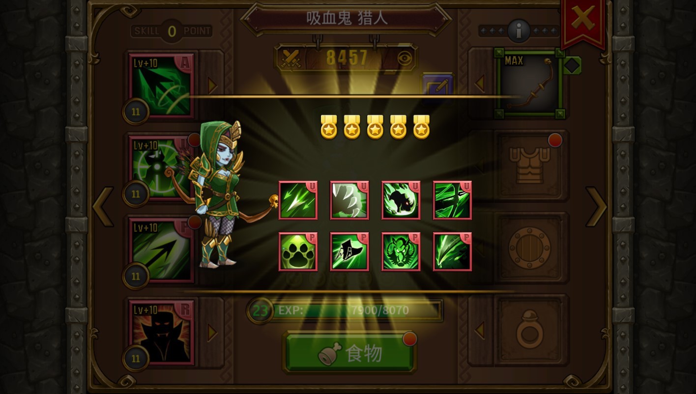 星级说明:英雄具有星级的属性,星级对应技能栏的数量。