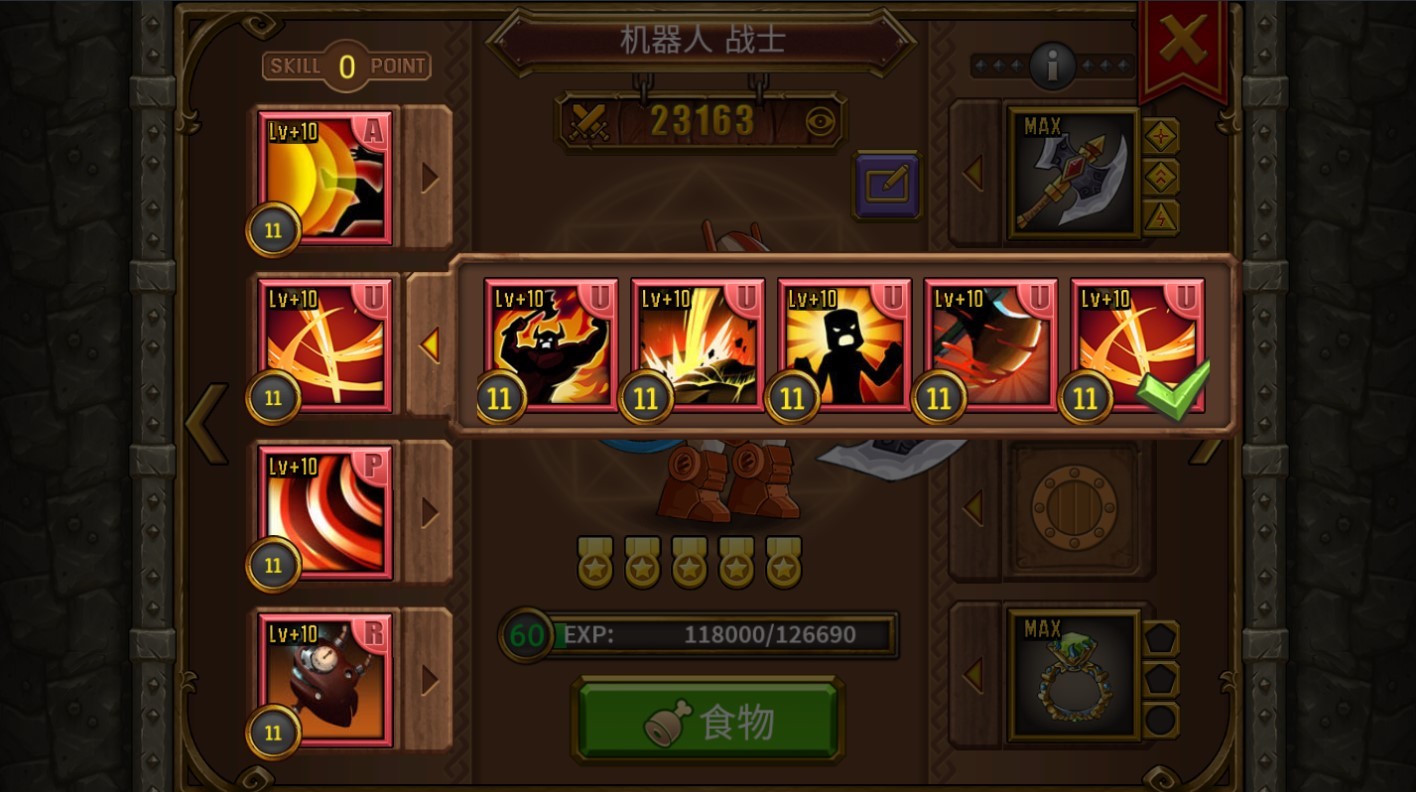 技能说明:每个英雄拥有4个技能,分别为主动技能、终极技能、被动技能和种族技能 ,种族技能为固有,根据英雄种族来决定,其他技能可以通过收集技能碎片来解锁,并进行更换