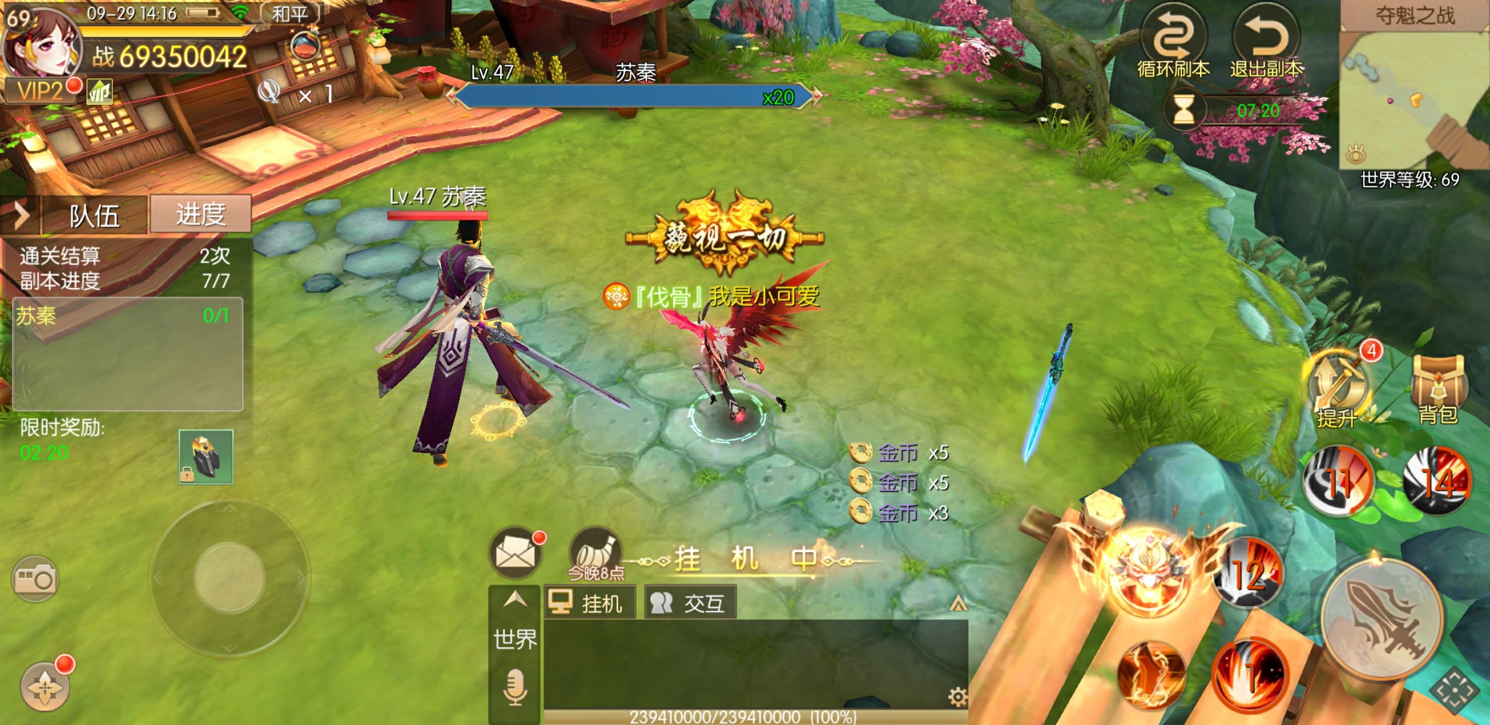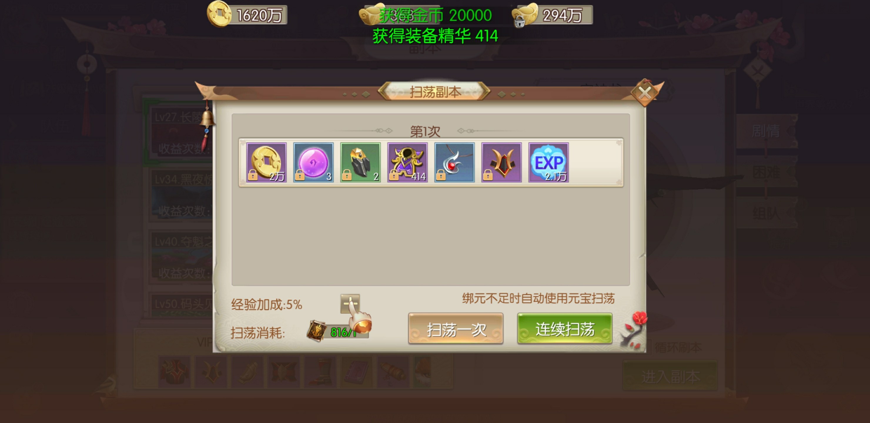 跟剧情副本一样,组队副本也是获取金币的主要来源之一,依旧随等级提升开放更多副本。不过组队副本每个副本的收益次数会比剧情副本少,只有2次,但是单次奖励有所提升,基本每次会有5万左右的金币奖励。虽然表面为组队副本,只要你够强也能单人进入,后期高等级就是直接扫荡。