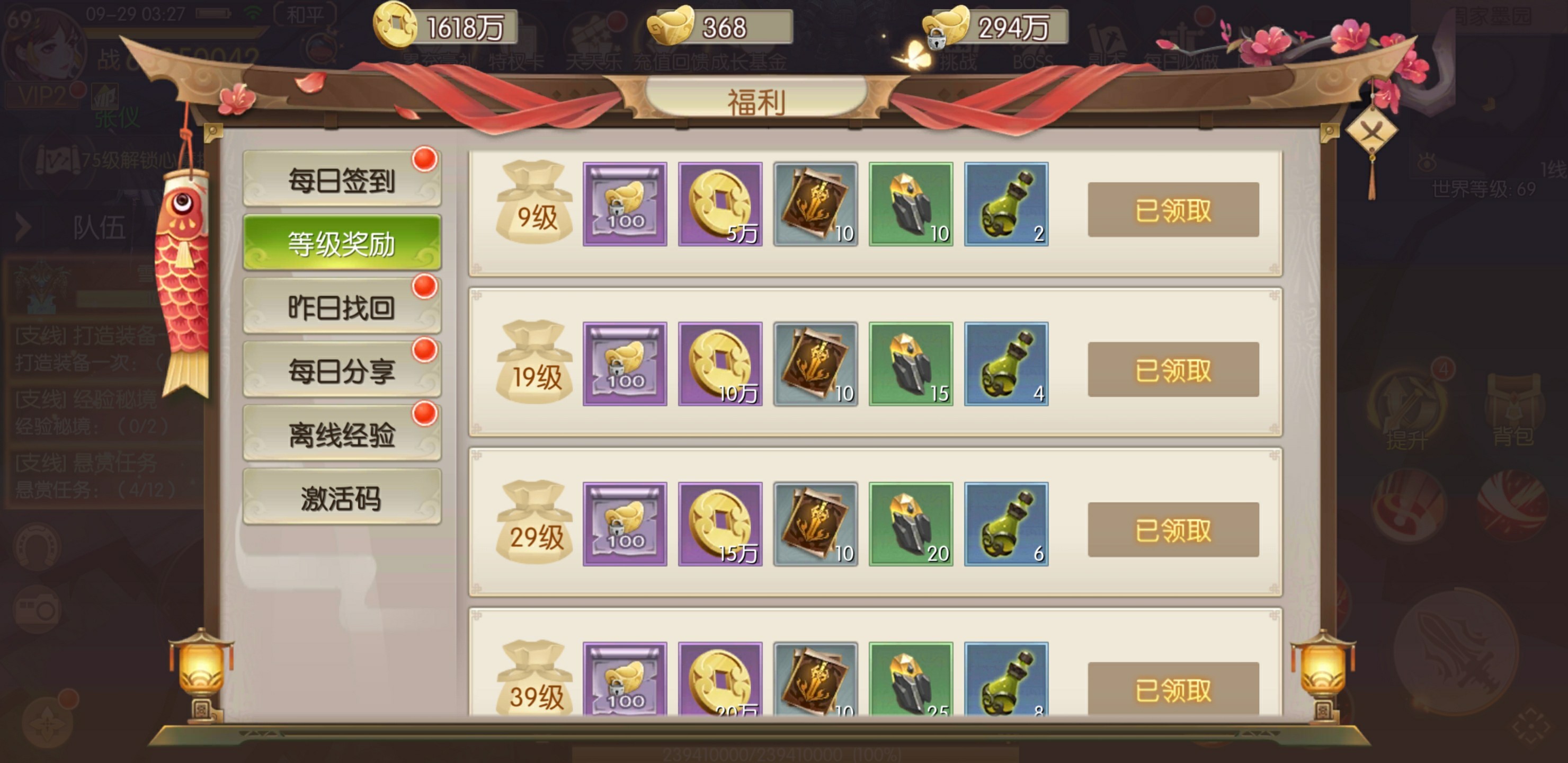 做任务得金币算是被动塞钱,但主动找钱呢?在《剑王朝》手游里打开福利一项,找到“签到奖励”,以1万起步依次递增,最高可以获得5万。升级奖励也别错过!少侠在游戏中每提升10级,就可以在等级奖励中领取丰厚的等级礼包,每个等级礼包里都装有大量的金币,以5万金币为基础,每10级金币翻倍。