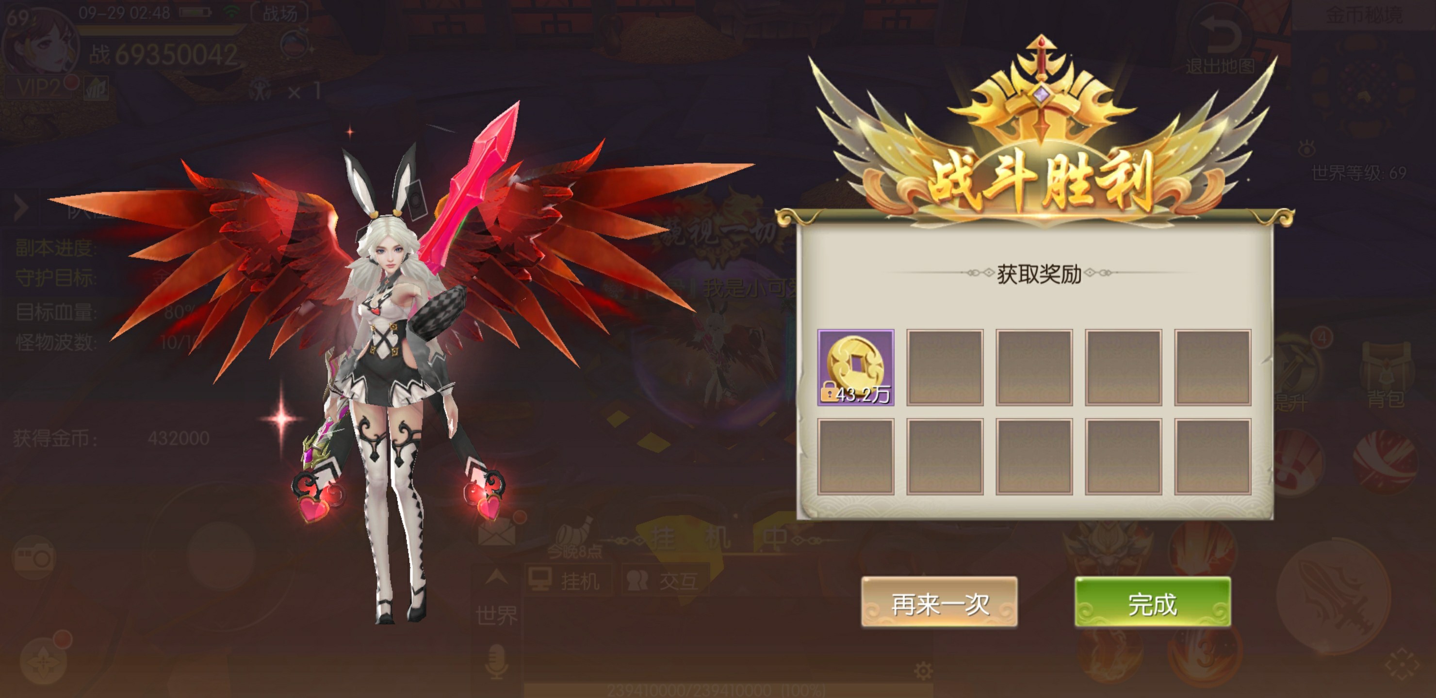 打开日常,找到金币秘境,刷满次数。看到大量金币入账,是金币秘境带来的最直观的感受。此玩法全天开启,需要少侠保护金币塔不被小金猪摧毁。总共三个阶段,每个阶段有十次金猪入侵,击杀金猪会有金币掉落,平均每一场下来会有40多万的金币收益,整体来说还算不错。