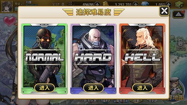 进入远征战场我们选择自己合适的难度,来进行体验游戏