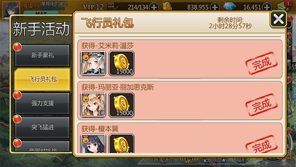 用户升级飞行员到达一定次数之后,可以免费领取金币及大量钻石,方便用户继续升级及使用钻石够买弹药(体力)与抽卡
