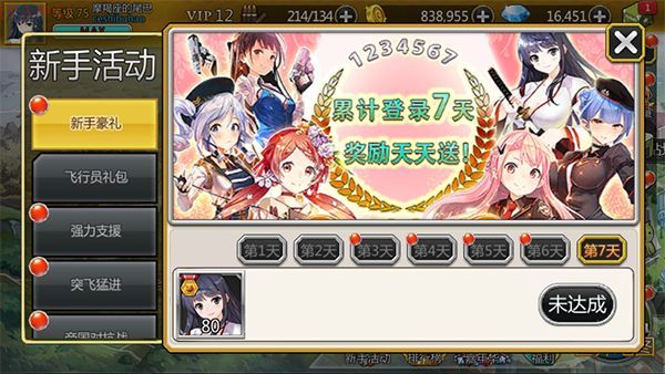 用户每天登陆游戏都会获得登录奖励,第七天登录,还可以领取3星强力飞行员
