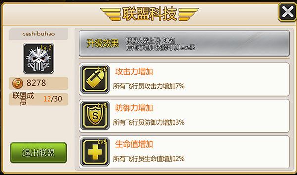 联盟科技,可以提升成员的各项属性,用户通过消耗体力,来获得联盟积分,联盟长通过消耗积分来提升科技等级。