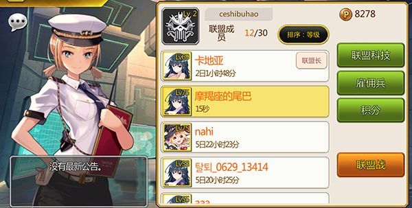联盟内,会长可以发布公告,方便用户及时了解自己的联盟信息,成员也可以在留言板内留言,互相进行沟通与交流。