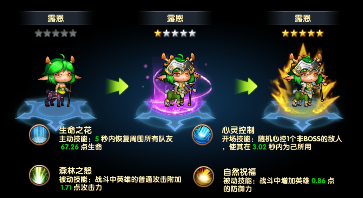 自然祝福,增加英雄一定的防御力,在后面的关卡狡猾敌人经常会从后面包抄过来,为了保护女神,需要露恩临时充当半个坦来吸引仇恨,此时的自然祝福显得尤其重要,配合大招回血,极大的提高了团队的过关能力