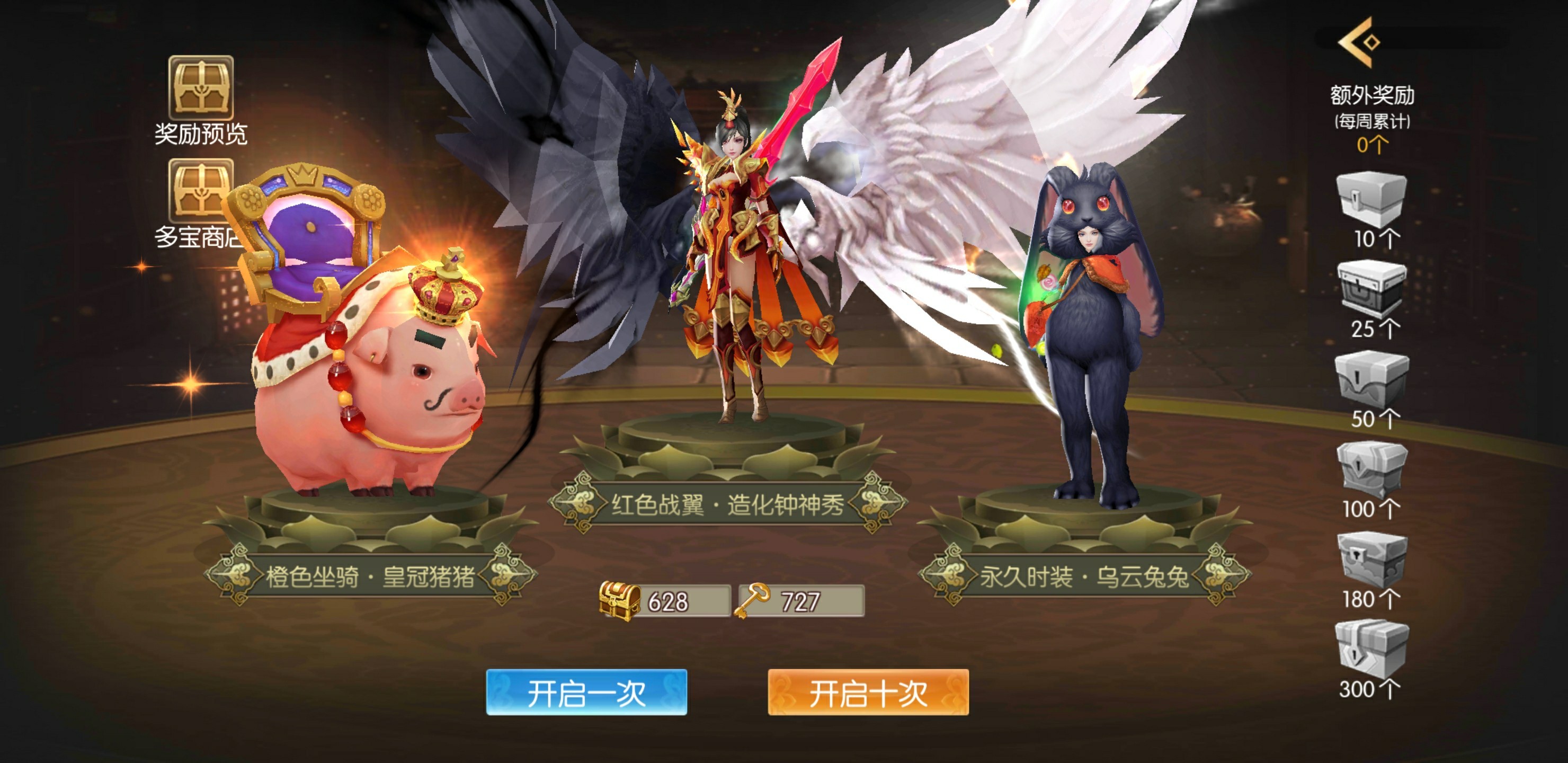 要想快速提升战力的话,花点小钱在多宝锦盒上也是不错的选择,这可是连排行榜大佬都推荐的氪金项目之一哦。不求像大佬一样无限开盒,只求能领完每周低保就行。盒子里有稀有坐骑、宠物、时装等等,主要看手气,但即使是非洲酋长,也能拿到玄水丹,使用后可以直接提升战力。