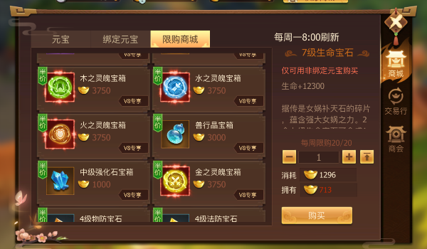 灵魄的升级材料达到VIP8之后,就可以直接在商城购买,价格有点小贵。