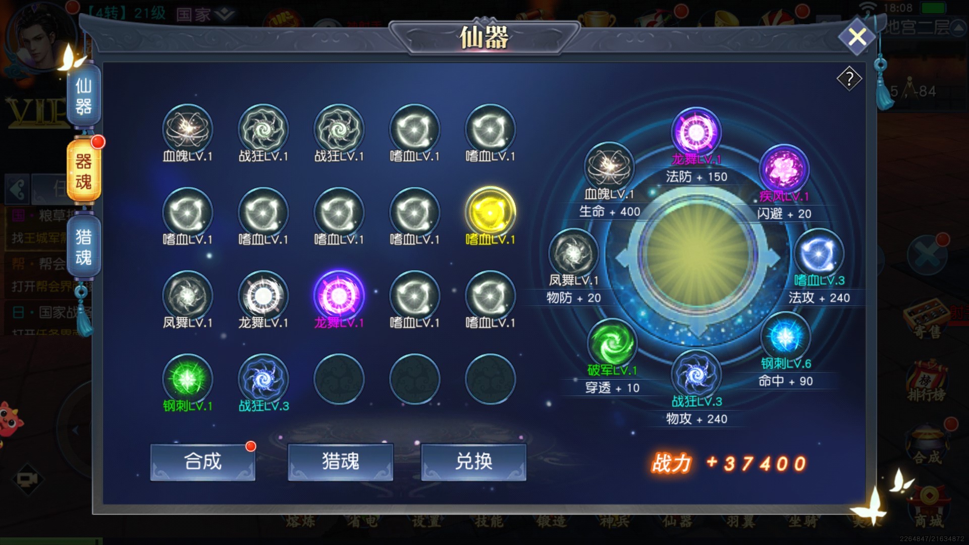 6、每天可免费猎魂10次,免费次数用完后可用历练及元宝进行猎魂