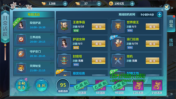 王者间的角逐,输与赢,转瞬间决出胜负。每天能进行10次PK,奖励大量经验和荣誉。
