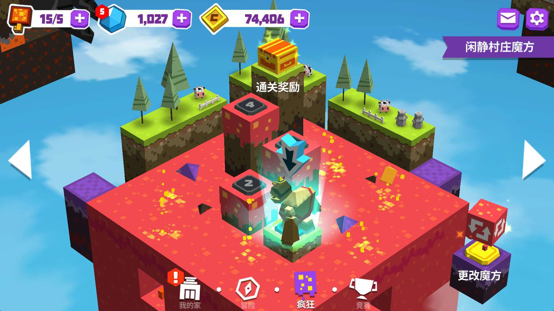 当玩家的冒险达到一定进度,会开启‘疯狂模式’,一共提供20个主题地图,每个地图包含4层关卡,难度逐步提升,如果中途挑战失败,必须要从1层重新开始哟。