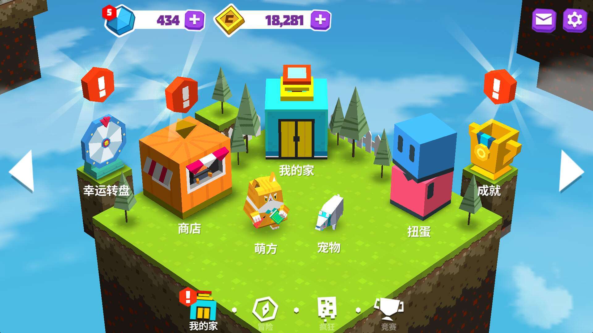 方形之路在冒险途中,不要忘记去自己的家里探探,你可以查看、更换自己的萌方形象和宠物,还有每日转盘、登陆福利、成就奖励。