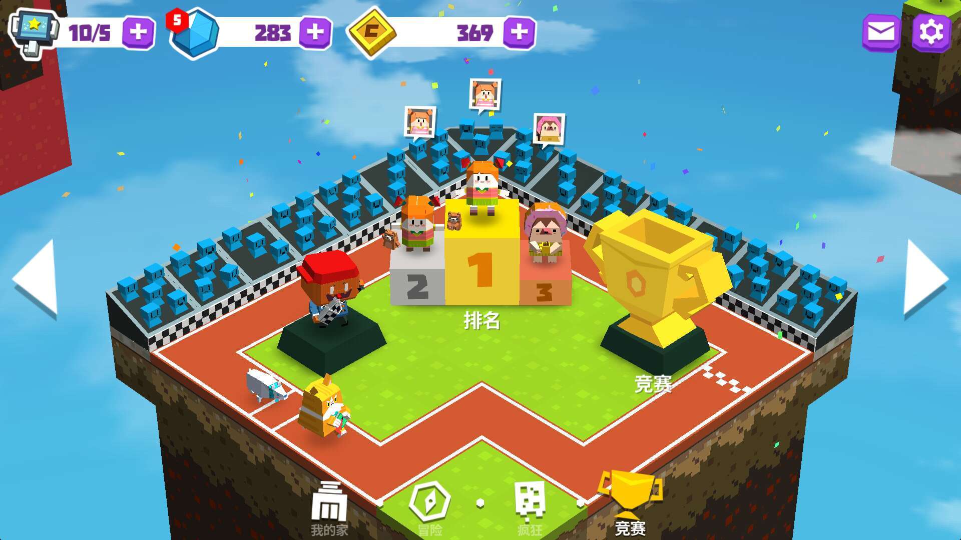 五人竞赛模式里,会随机比赛地图,前3名完成比赛的玩家可以获得奖杯,其他人会扣除一定的奖杯数量。获胜的奖励主要是黑宝石,可以在商店中购买高级宠物和萌方角色。