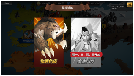 需要玩家收集不同攻击方式的单位,玩家携带魔法类和物理类英雄及士兵,进行指定关卡挑战。