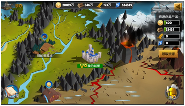 在大地图上,每个章节打通后,会激活一个隐藏在地图上的资源点,占领后持续产生收益。