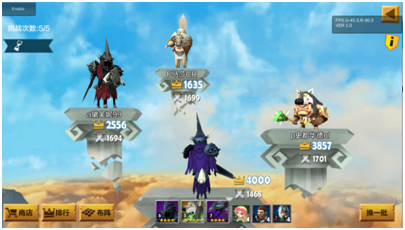 常规PVP,异步对战,排名高的一方与失败方排名对调。每日9点结算排名,发送对应名次奖励。