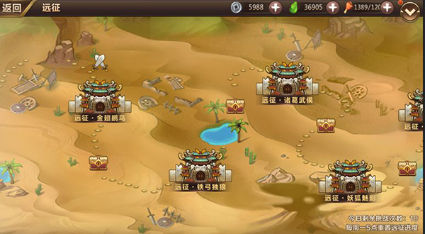 仙灵阁页面右下角处点击“远征”进入
