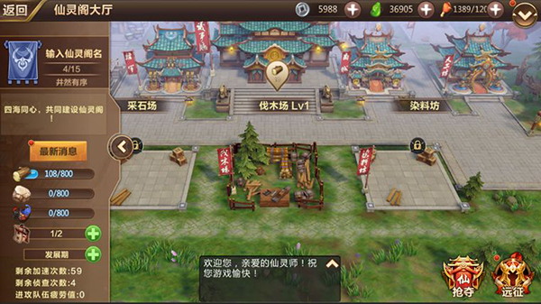 中后期开启仙灵阁抢夺:进入抢夺可以偷取其他仙灵阁采石场/伐木场/染料坊的资源
