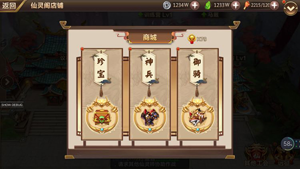 商城中有珍宝商、铁匠、坐骑商三类商人、分别是获取游戏道具、装备、坐骑三大类物品。