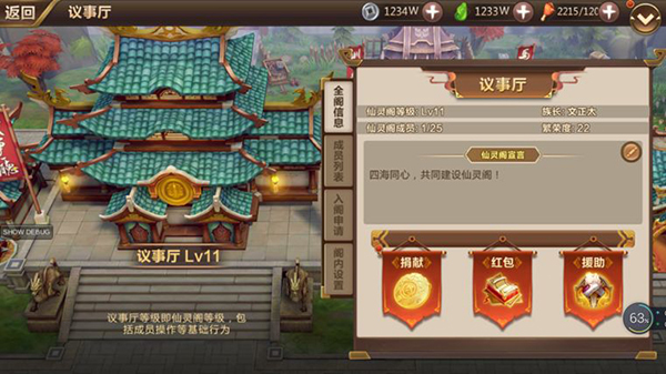 议事厅内主要是展示一些仙灵阁共有属性,成员列表等。