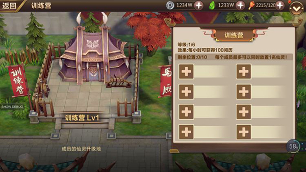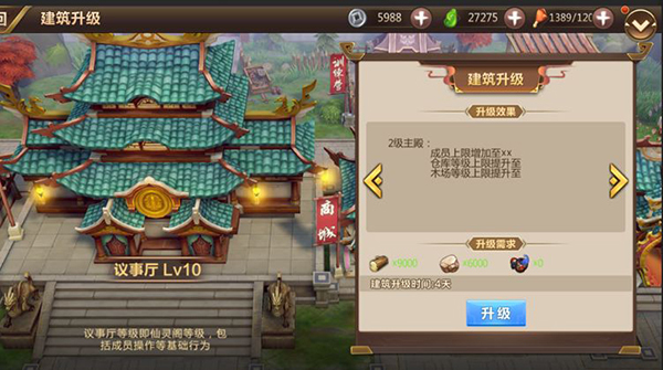 议事厅等级即仙灵阁等级,默认1级,决定人数上限,其他建筑当前等级上限及各种功能开启。