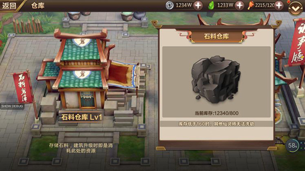 建筑等级决定仓库对应材料存储上限,各个建筑升级时所用的材料即是消耗此处资源。