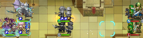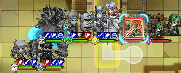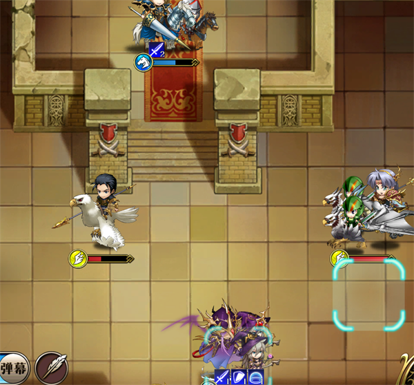 由于格尼尔是枪兵而对方有一名步兵,因此第一回合走位要避开对方步兵的攻击范围而进入骑兵的攻击范围引诱对方全体出动攻击我方。
