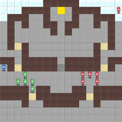 站位如图,其他人就不要越过这两个人了,不然会进入更多的弩车射程,如果黄毛装备练度不高有可能被直接砸死。敌方行动时杰西卡会砸一个闪电风暴上来,而其他人则只有骑兵可以攻击到我方,他将被格尼尔反击至残血。