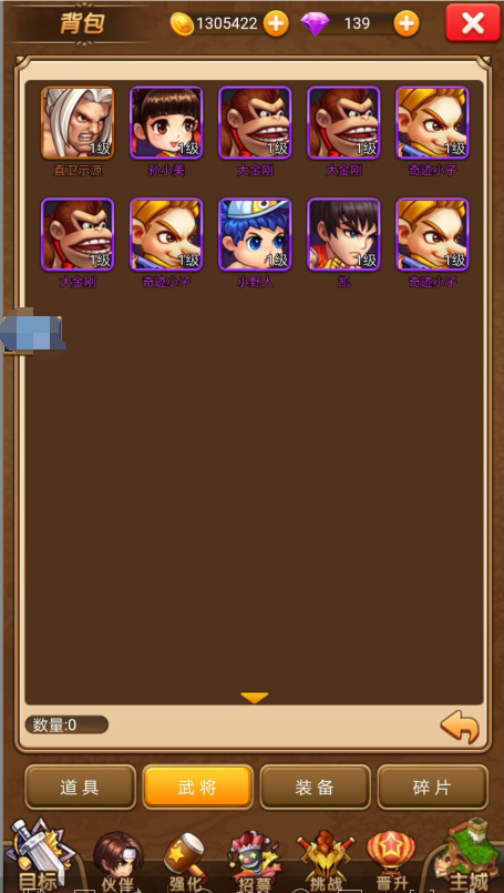 碎片:可放置武将和装备的碎片,达到一定的数量的时候可以进行合 成。