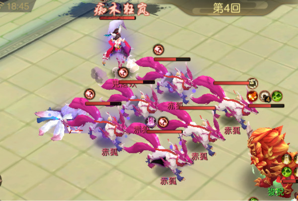 开局我们选择点杀九尾狐,因为九尾狐前五回合会做一些很坏的事情,尤其是第五回合的全体封印,所以我们最好在第四回合的时候杀死,一直集火她打死就好。