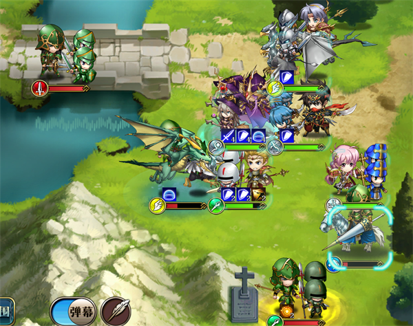 第二回合格尼尔为队友开启超绝,艾美达圣言将枪兵打残,而马修无论只要当前职业不是骑兵,都可以直接上前攻击对方骑兵,枪兵会因护卫而死,雪莉则利用自身特点向左秒杀对方枪兵和步兵,以降低步兵对格尼尔的威胁,波赞鲁普攻打死飞兵即可,对方回合骑兵则会残血攻击我方被格尼尔护卫反击致死。