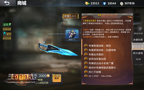 而破空光刃的另外一个技能则是迅捷背刺。当我们手持破空光刃从背后攻击敌人时,伤害将会大幅度增加。对于喜欢刀战的玩家来说,这样的一个效果,必然会让破空之刃成为我们叱咤战场无往不利的神器。