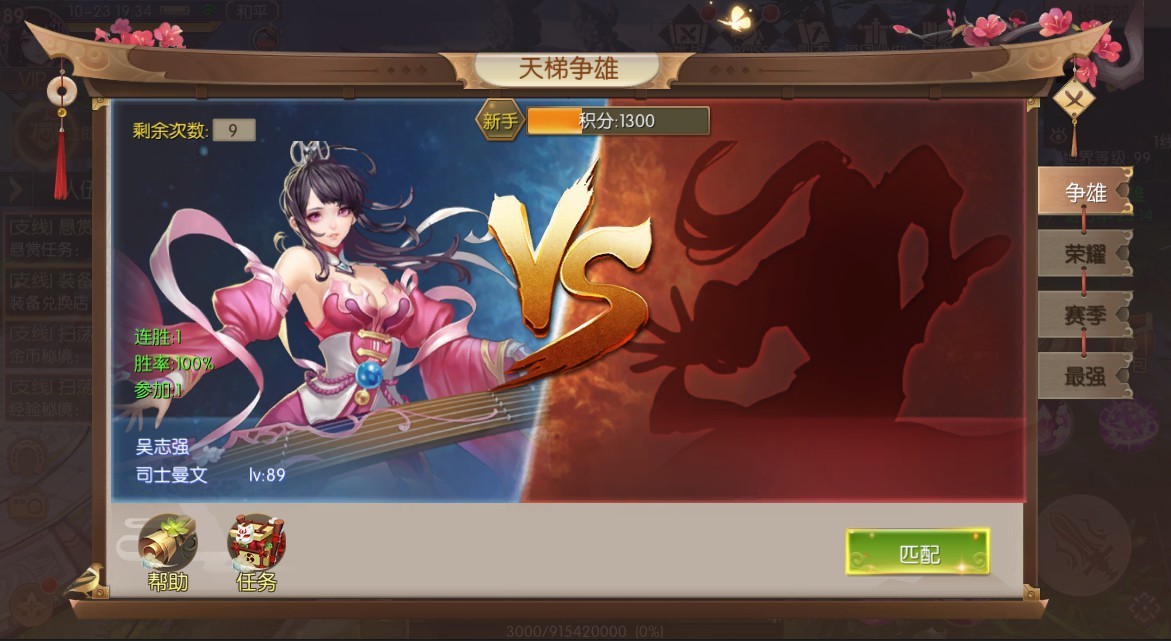 天梯争雄是一个即时在线对战的PVP玩法,少侠可以与全服玩家进行匹配对战。该玩法会代入战力等级,是对少侠在游戏中的一种考验。根据少侠的战斗成绩会有不同段位表现,从低到高分别是新手、青铜、白银、黄金、钻石、王者,系统会依照段位进行赛季奖励发放,喜欢PK的少侠千万不要错过。