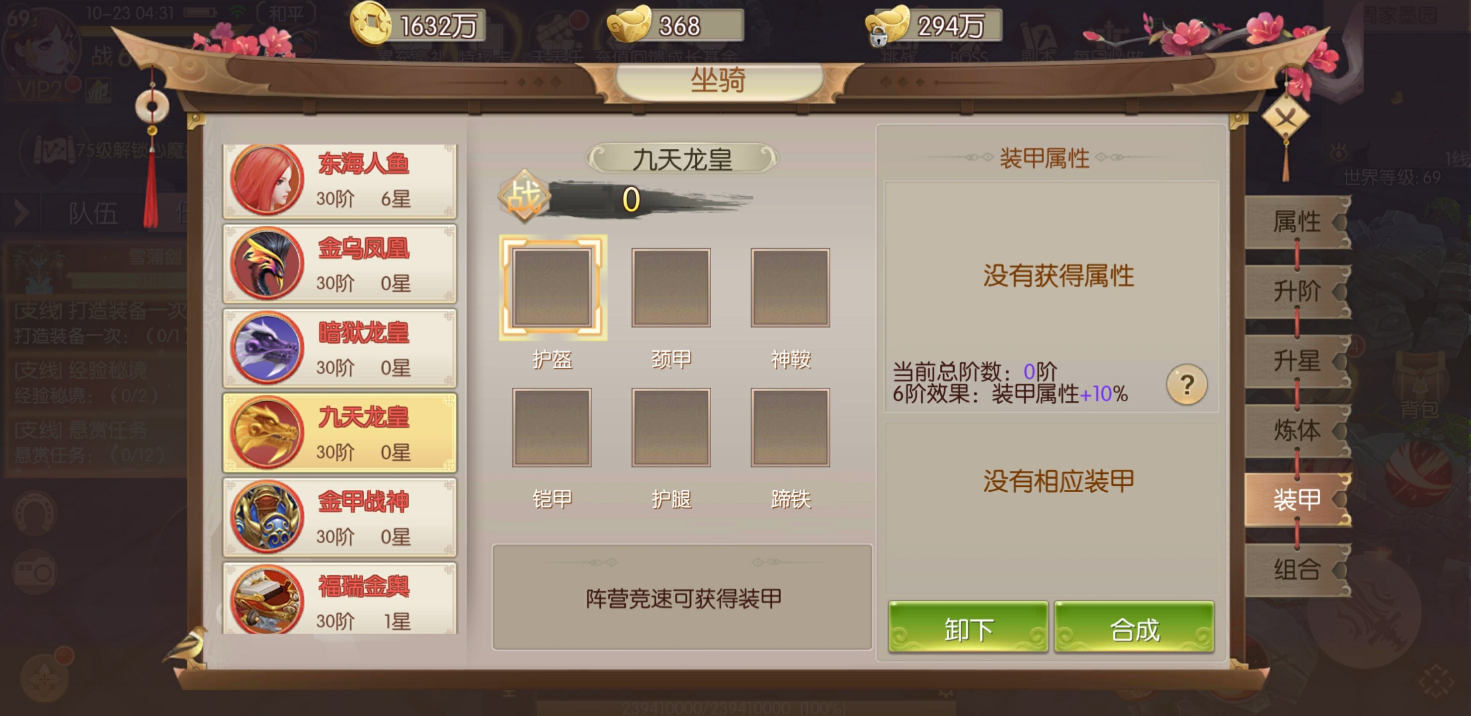 坐骑装甲是《剑王朝》即将推出的坐骑新玩法。顾名思义,少侠可以给自己心爱的坐骑穿戴装备,共同作战,而少侠也能借助坐骑装备获得角色战力上的提升。坐骑共有六个不同的部位以供装备,对应着少侠不同的属性。看到这儿的少侠估计又要发问了,坐骑装备究竟从哪儿获取?蚕爷偷偷告诉你们,坐骑装备可以从阵营竞速中获取哦!