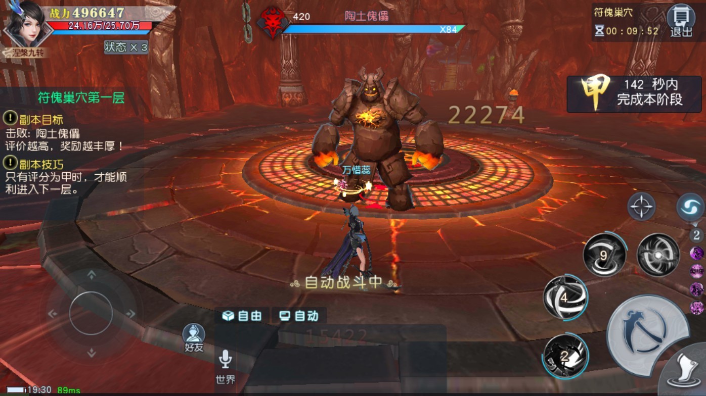 符傀巢穴以挑战闯关为主线,在规定时间内击败boss即可通关,只有少数通关评级达到最高评分“甲级”的道友才能进入下一关。关关难过关关过,通关的层次越高,则奖励越为丰厚。副本每天可以挑战两次,每次增加活跃度10。已经通关的副本层次,可以使用扫荡功能,快速获得奖励。
