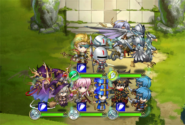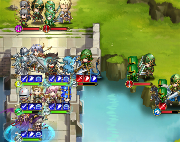 第一回合,格尼尔上移两格开启枪阵,其余人稍稍上移即可,敌方骑兵会冲下来被我方格尼尔打残,其余人则向下推进但是无法攻击到我方。