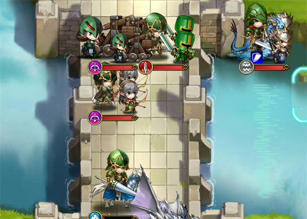 第三回合,雪莉上前将对方弩车秒杀,同时艾美达上前利用龙卷风远程攻击对方水军先拉一下仇恨,格尼尔上前开启护卫技能保护雪莉及艾美达,其余人则缓缓跟上。敌方回合即会全军出动。