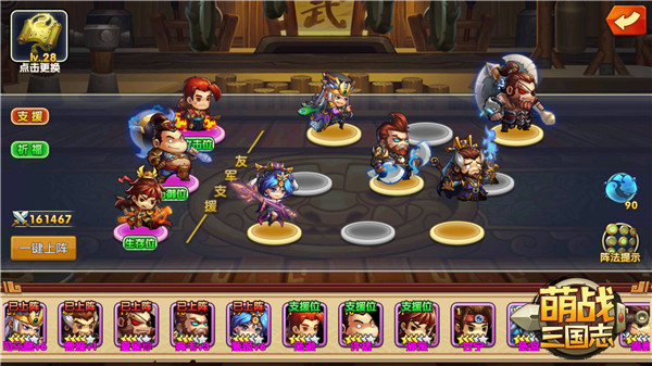 在游戏中,玩家可以自由选择上阵的5名主力武将和3名支援武将,将他们从武将列表中拖动到指定的位置,若是组成了阵法,还能获得阵法加成,得到暴击、闪避、防御等不同属性的提升。武将的站位决定了其在战斗中的输出环境,因此十分重要。