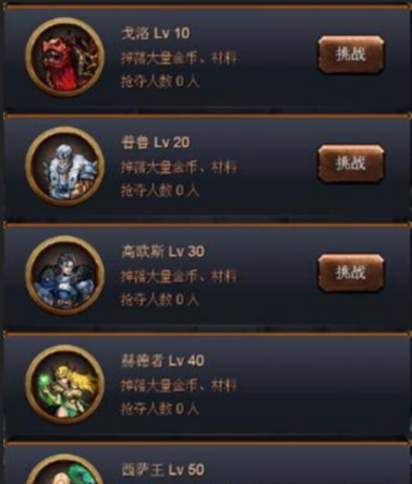 首先点击boss的小图标就会看到这个界面,这个是世界boss的界面。按着等级挑战吧,我的建议是能打过的都打一遍,毕竟会掉落材料阿。