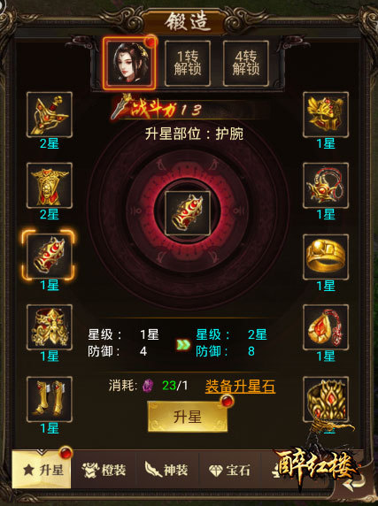 江湖中人皆知,在提升战力这条道上,装备有着举足轻重的作用。《醉红楼》中的锻造系统是人物战斗力的主要提升方式,分为升星、橙装、神装、宝石和强化五个部分。